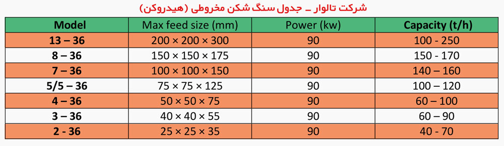 در سایز های: ۳۶-۲ , ۳۶-۴ , ۳۶-۵ , ۳۶-۵/۵ , ۳۶-۶/۵ , ۳۶-۸ به تزتیب ریز شکن، متوسط شکن و درشت شکن می باشد.